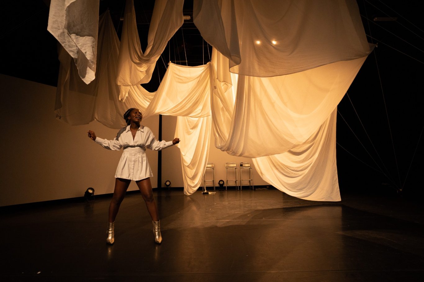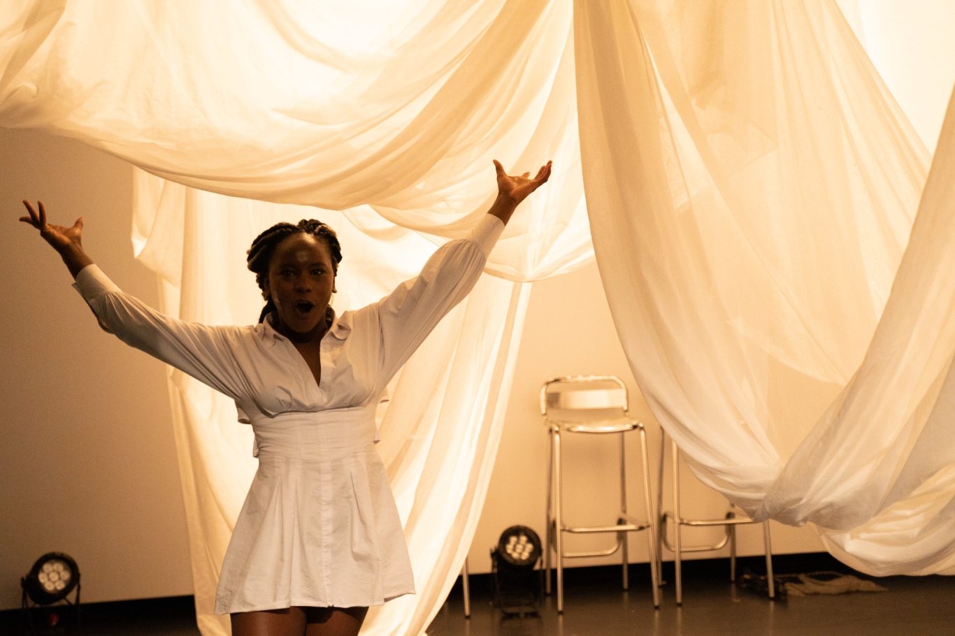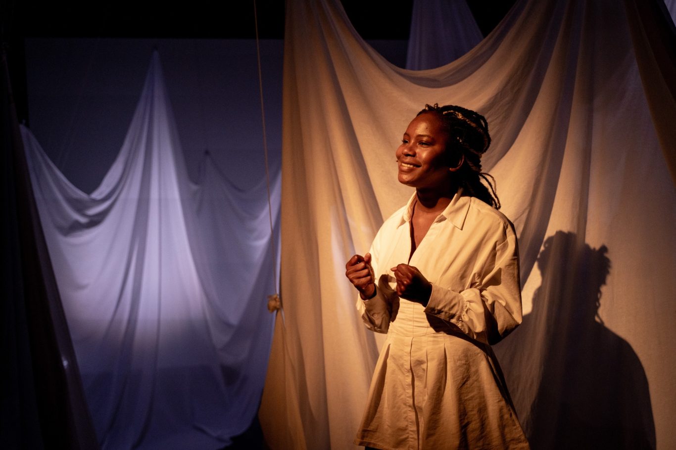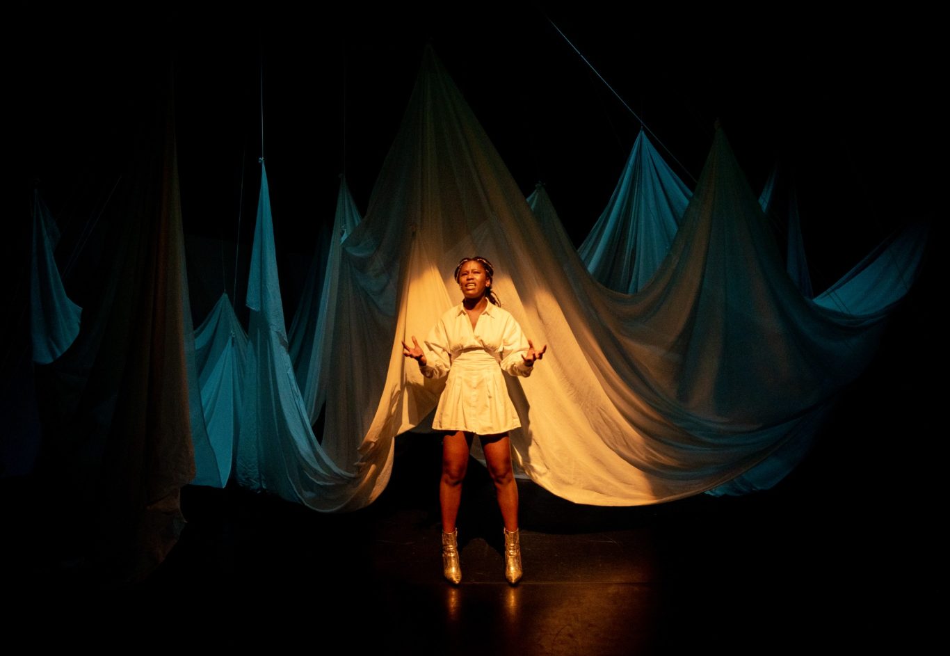 In de muzikale en beeldende performance Bloodscent volgen we de koortsdroom-meets-healing-journey van een jonge vrouw die ‘het roofdier’ dat haar misbruikte onder ogen moet komen om in het reine te raken met ‘de prooi’ die zij nooit wilde worden. Gegidst door haar spirituele voorouders stelt ze zich open voor haar Santa Yeye en volgt het grillige pad naar de ware heling: die van Body, Breath, Spirit en Soul.