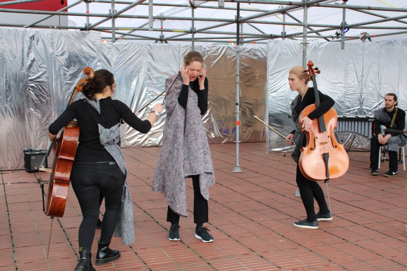 In Caged worden al deze geluiden van de stad zowel auditief versterkt als vervreemd. Aan de hand van improvisaties vervormen onze musici deze oncontroleerbare geluiden van stad tot de angstbeleving van de Bange Mens.