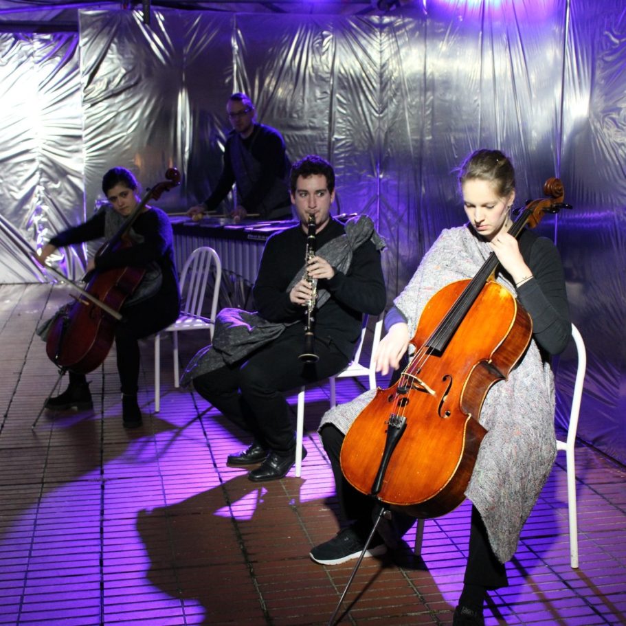 In Caged worden al deze geluiden van de stad zowel auditief versterkt als vervreemd. Aan de hand van improvisaties vervormen onze musici deze oncontroleerbare geluiden van stad tot de angstbeleving van de Bange Mens.